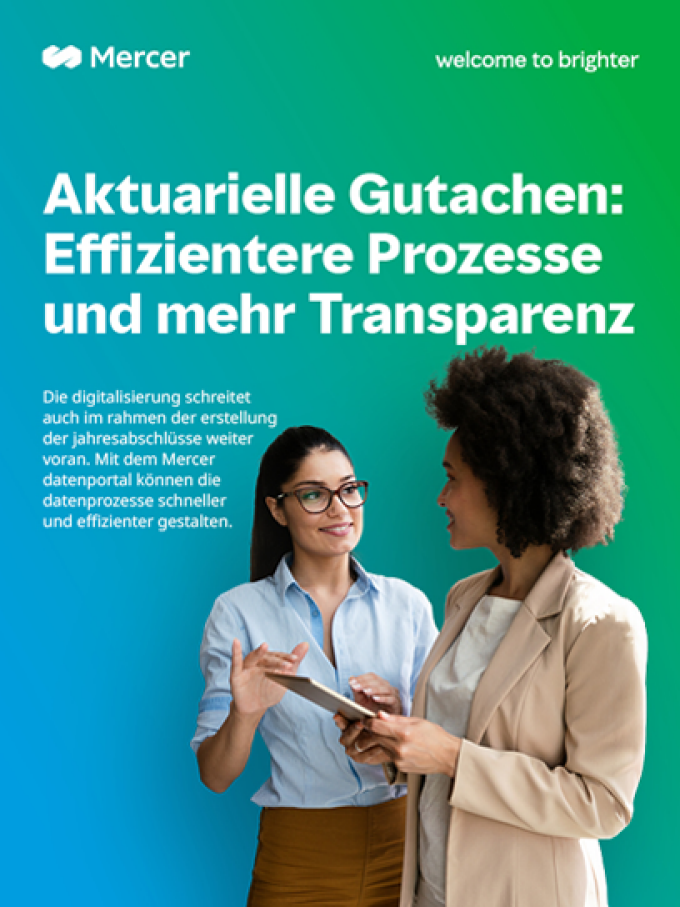 Mit dem Mercer Datenportal können Sie die Prozesse bei der Erstellung aktuarieller Gutachten automatisieren und so den Zeitaufwand deutlich reduzieren.