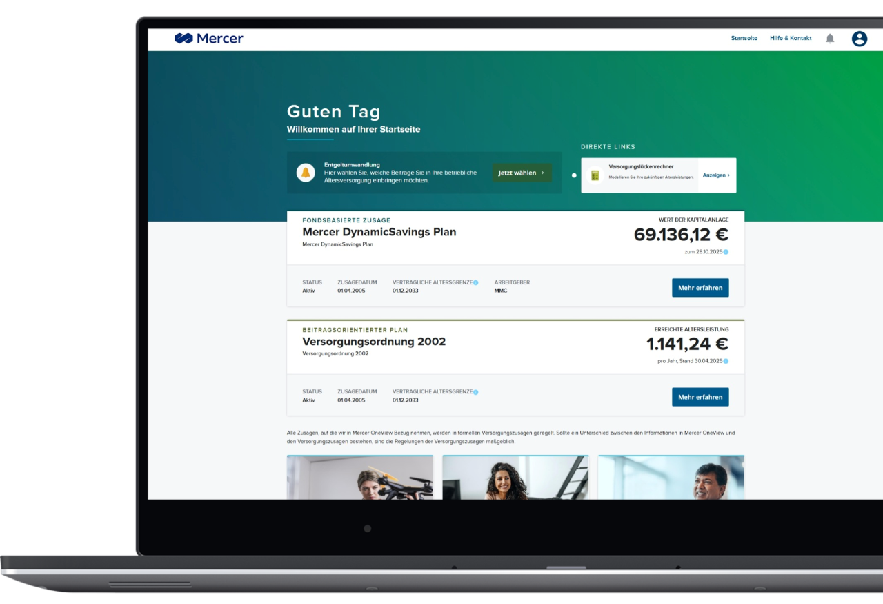 Deshalb ist das Portal OneView für die Planteilnehmenden von bAV und ZWK fester Bestandteil der digitalen Administrationslösung von Mercer.